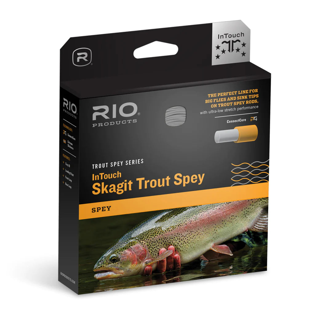 The RIO InTouch Skagit Trout Spey line is the line choice for you if you are Spey casting with either a light, trout Spey rod or a single-hand rod and wish to Spey cast large streamers. The Skagit version of the RIO Trout Spey lines has a more powerful taper for turning over heavier sink-tips and heavier flies. To setup your rig with the RIO Skagit Trout Spey line, you do not need a separate running line. Just connect this line to your backing and then add your sink-tip of choice. Along with RIO, we recommend the RIO Light MOW Tips as good tips to use with this line. If you want only a floating line setup, you will still need to add a tip, so choose the Light MOW Tip in the Floating version. The Skagit Trout Spey line is not designed to cast without a tip on it.