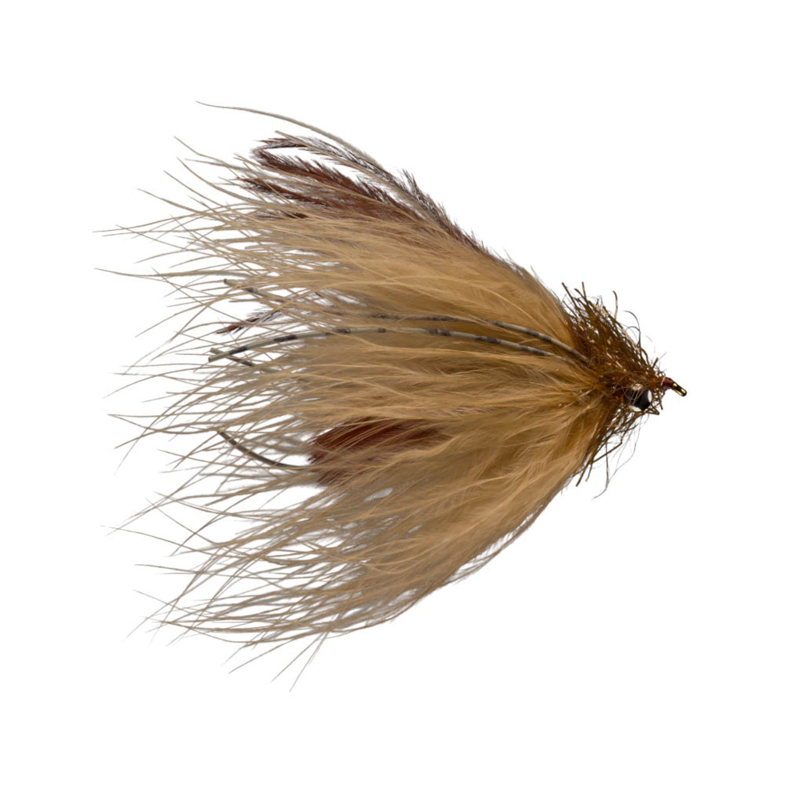 The original Tractor is tied using lead eyes on top of the shank to make the fly ride with the hook point facing up. But some find this fly too heavy for their liking. We tied the Tractor Light with brass eyes and placed them under the shank. This keep the hook riding point down. The fly is much easier to cast and has a very clean retrieve.
